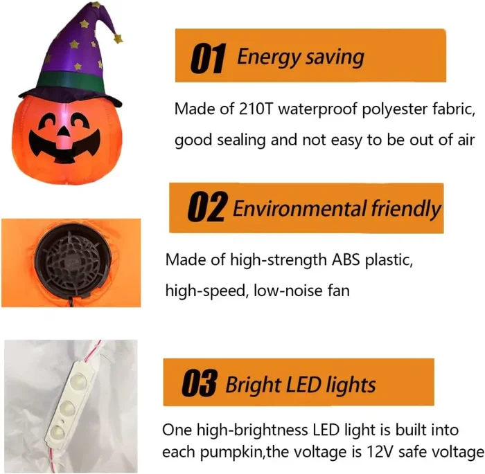 23GUANYI Zucca Gonfiabile di 2,5 m, Zucca Halloween Gonfiabile con Cappello da Mago, Decorazioni per Feste Decorazioni di Zucca Gonfiabili All’aperto per Prato, Giardino