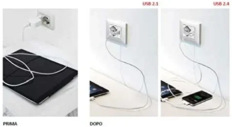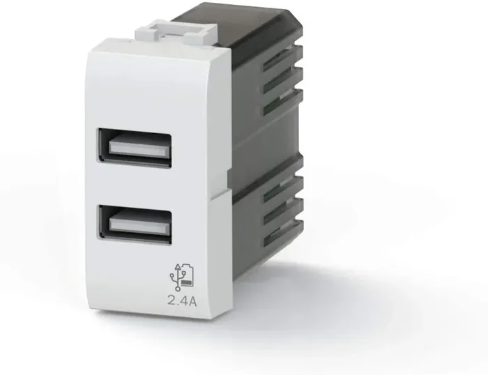 Massima potenza, due uscite e minimo ingombro: con la presa USB 2.4 ricarichi velocemente il tuo smartphone, tablet e tutti gli altri dispositivi, basta collegare il cavo USB per ricaricare i tuoi dispositivi in modo rapido e ordinato, senza bisogno di alimentatori che generano ingombri inutili. Grazie alla modularità del modulo singolo, puoi anche combinare con altri prodotto 4Box, e creare la tua presa su misura. Alimentazione diretta 110-230 V 50-60 Hz, 1 modulo. Compatibile con la serie civile Bticino Living Light bianca.