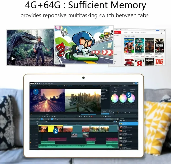 • Memoria potente: viene caricato con un processore a 4 core con 4 GB di RAM + 64 GB di memoria per garantire la velocità di tutte le operazioni. Anche slot per scheda Micro SD installato, è possibile aggiungere 16G-128G di scheda SD per aumentare la memoria!