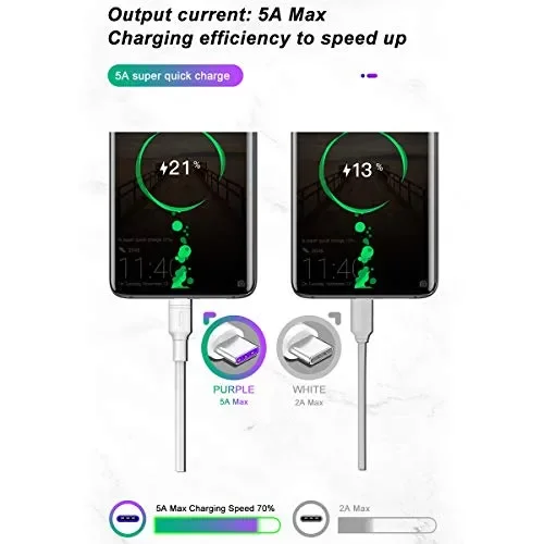- Stabile e veloce: 5A alta velocità di carica, supporto carica supercarica (4,5 V 5A) La testa filo è design anti-rottura, non facile da rompere; la linea è costituita da un nucleo di rame spesso, quindi 2M può anche essere caricato in carica, non influisce sulla velocità di ricarica.