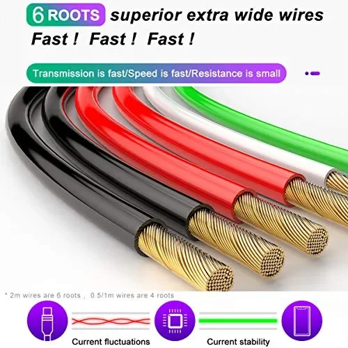 - Stabile e veloce: 5A alta velocità di carica, supporto carica supercarica (4,5 V 5A) La testa filo è design anti-rottura, non facile da rompere; la linea è costituita da un nucleo di rame spesso, quindi 2M può anche essere caricato in carica, non influisce sulla velocità di ricarica.