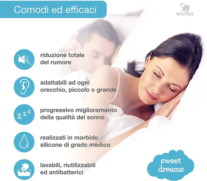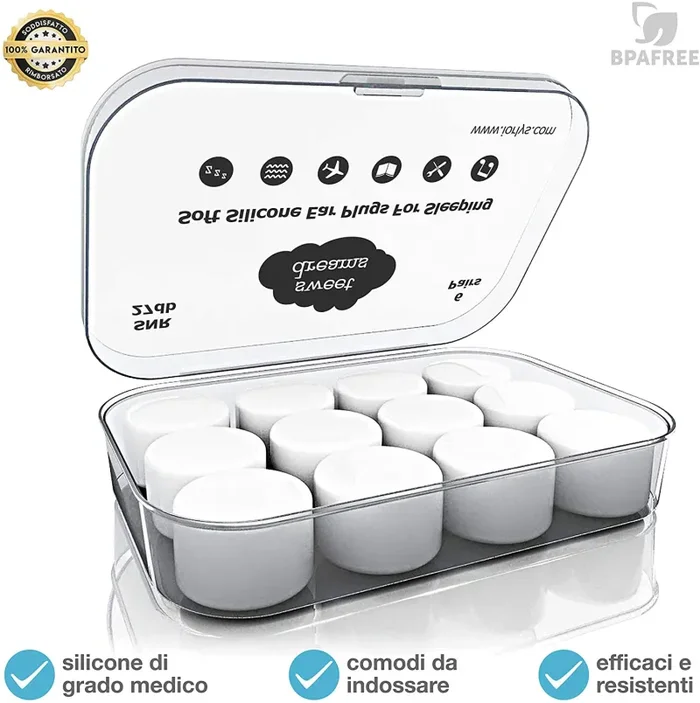 Con i nostri Tappi Orecchie Antirumore , realizzati in soft silicone, lavabili e riutilizzabili, potrai riscoprire fin da subito il piacere di dormire.