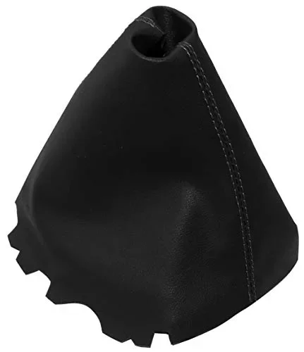 Cuffia leva cambio in pelle sintetica nero con cuciture nero.Questa offerta e solo per la parte sintetica della pelle, la struttura in plastica non e fornita.Avrai bisogno di colla per incollare il cuffia nella cornice in basso.ATTENZIONE: Colla e telaio non sono forniti !!!Non e compatibile con le versioni automatiche del cambio.