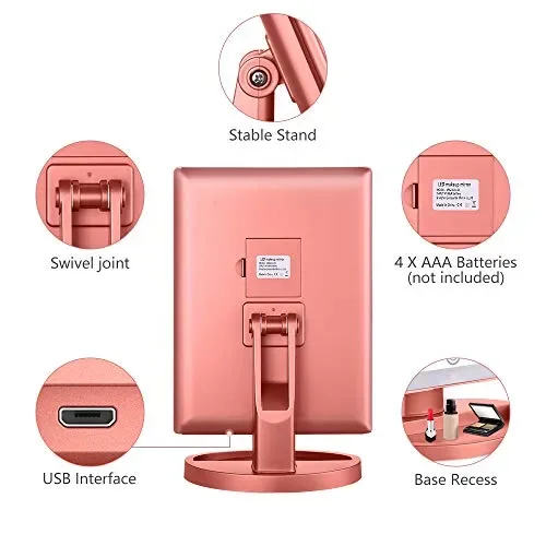 - ☀️【 Doppie Modalità di Alimentazione 】- Specchio per il trucco alimentato da USB o 4 batterie AAA(le batterie non sono incluse, il cavo usb è incluso). Che tu sia a casa o all’aperto, offre grande praticità.