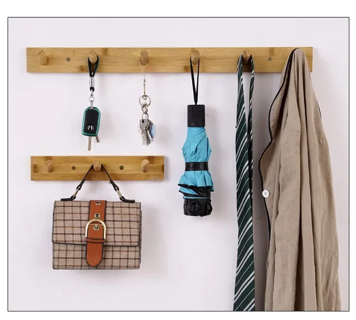Appendiabito a muro 4 ganci 40×6 cm in Bambù Naturale