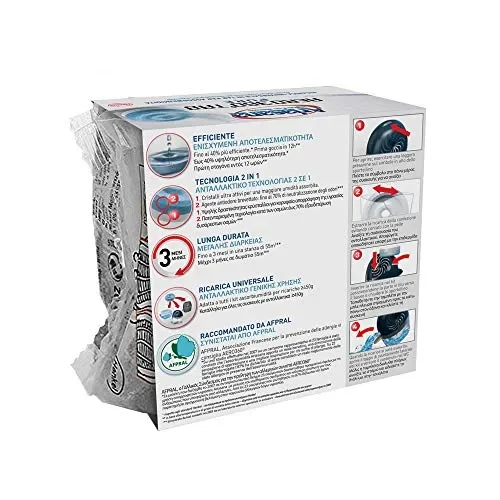 - 2-in-1 – Le Tab 360 ricarica con una speciale scanalatura brevettata per massimizzare la circolazione dell’aria, hanno cristalli attivi assorbiumidità e agenti attivi anti-odore.