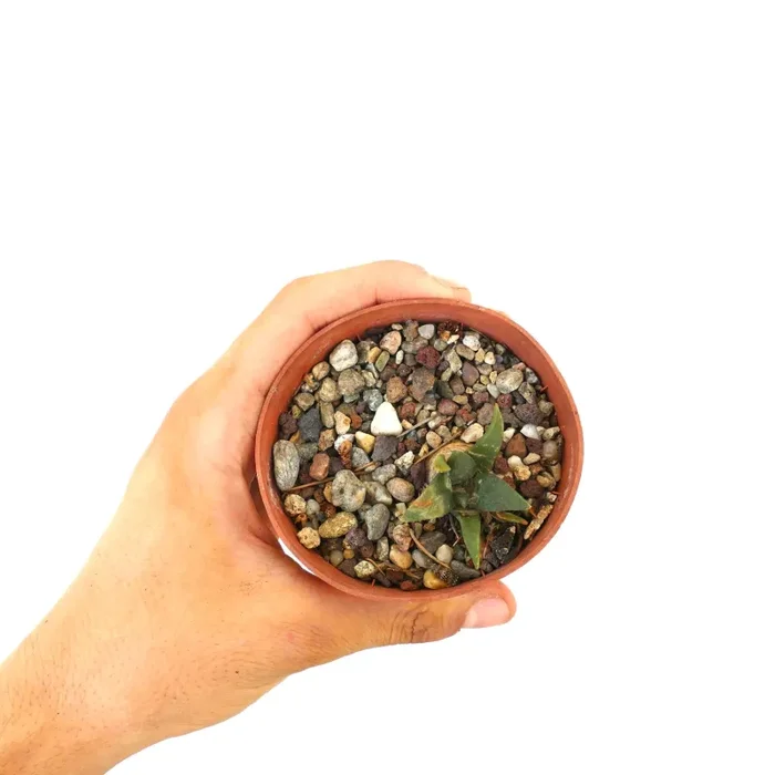 Ariocarpus hybrid è un cactus squisito noto per la sua struttura a rosetta bassa con tubercoli carnosi e triangolari che formano un unico disegno a stella. I tubercoli sono tipicamente verdi a grigi, con alcuni ibridi che mostrano tonalità vivaci o variegature. Durante la stagione della fioritura, questo cactus produce grandi fiori colorati che vanno dal bianco, rosa, magenta, al giallo, a seconda dell’ibrido. La combinazione sorprendente della sua forma geometrica e dei fiori vivaci rende Ariocarpus hybrid un esemplare ambito tra gli appassionati di cactus.