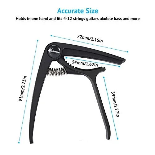 • ¡Ó QUICK CHANGE – Trigger Design a mano singola, con coperchio lungo 7,2 cm si adatta perfettamente a chitarra elettricha, ukulele, banjo, folk e mandolin, fino a 8 frets(NON ADATTO PER 12 STRINGHE)