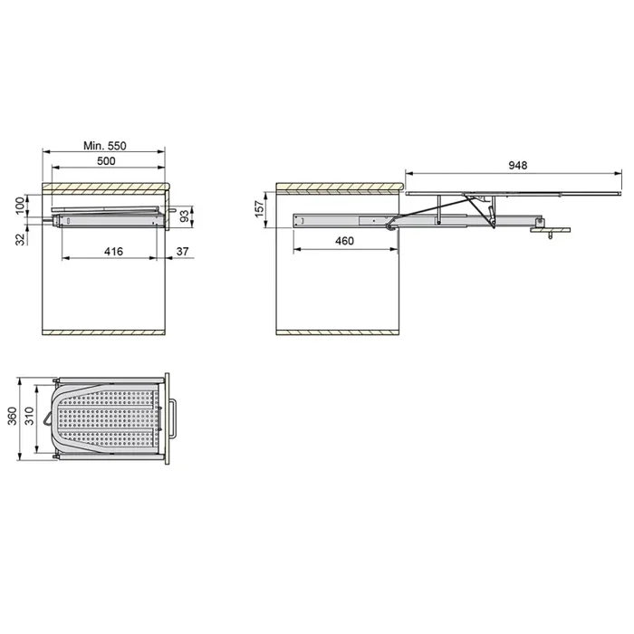 • Asse da stiro estendibile per montaggio integrato al modulo di cucina.