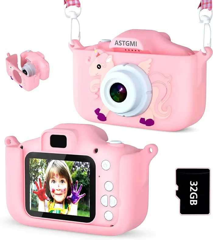 ASTGMI Macchina Fotografica Bambini, 12MP Mini Ricaricabile Fotocamera Digitale Bambina Videocamera Regalo per Ragazze Ragazzi 3-10 Anni, con Scheda 32 GB, Regali Giocattolo di Natale & Compleanno