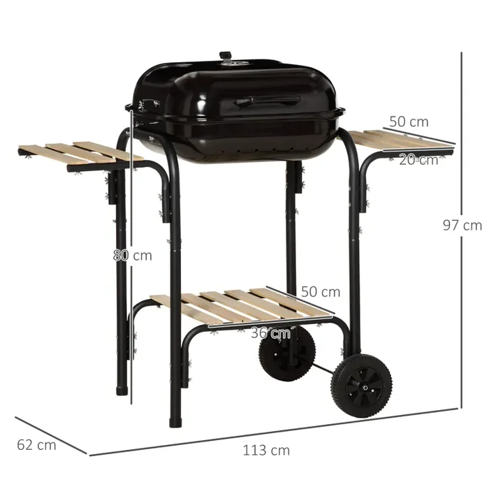 Per gli appassionati di grigliate, questo barbecue a carbone è la scelta indispensabile. Perfetto per grigliare pesce, carne e verdure, il nostro barbecue con coperchio garantisce un piacevole effetto affumicato ai tuoi piatti. Grazie alle ruote integrati puoi spostare facilmente il barbecue a carbonella dove ne hai bisogno.