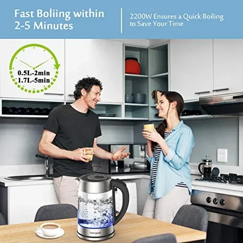 Bollitore Elettrico, Homgeek Bollitore Acqua Elettrico Veloce da 2200W / 1,7L, con illuminazione a LED, Spegnimento Auto, coperchio interno in acciaio inossidabile, Senza BPA [classe energetica A +++]