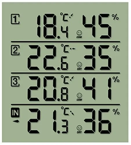 BRESSER Temeo Hygro Quadro Termometro e Igrometro per 4 Punti di Misura, Nero