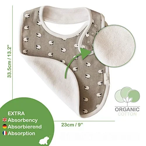 • GENTILE SUI BAMBINI – La morbidezza del nostro cotone di alta qualità garantisce che questi bavaglini biologici siano delicati quando si puliscono anche le pelli più sensibili. Dì addio ai vestiti bagnati e sporchi, questi eleganti bavaglini sono realizzati con cotone 100% biologico ultra-morbido sul davanti e un supporto assorbente in poliestere – la perfetta protezione per i vestiti e la pelle del bambino