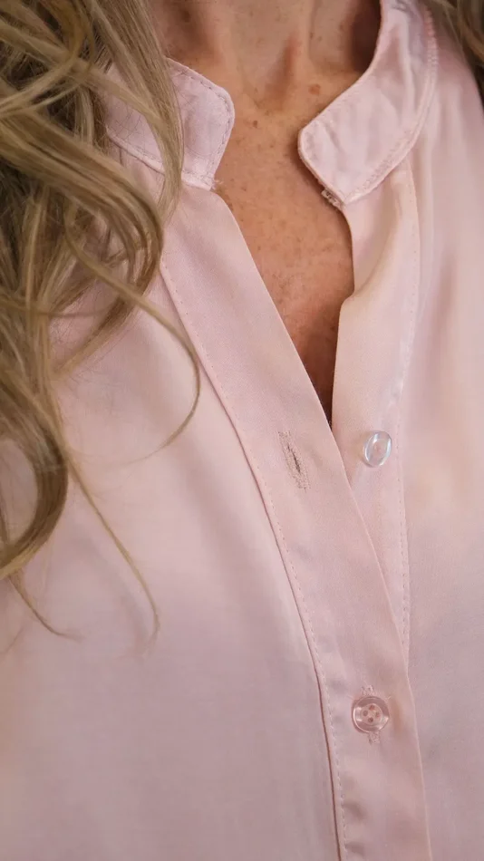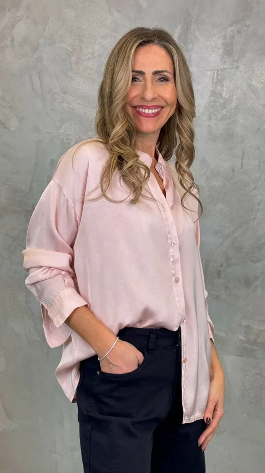 Camicia tinta unita morbida in misto seta e viscosa, colletto con bottoncini in nuance e pizzo valencienne bianco che rifinisce con eleganza e femminilità l’interno del colletto. Un must-have che non deve mancare nel nostro guardaroba.