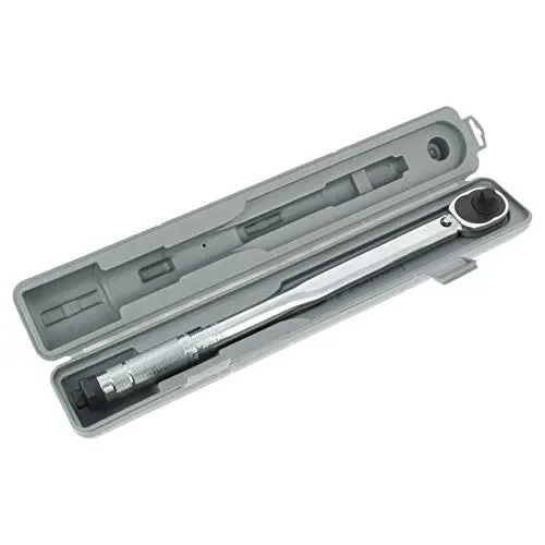 Chiave dinamometrica a cricchetto da impiegarsi con bussole (non incluse). Consente di serrare i bulloni stabilendo preventivamente la forza massima da esercitare. Lo strumento ottima per un serraggio controllato di viti e bulloni.