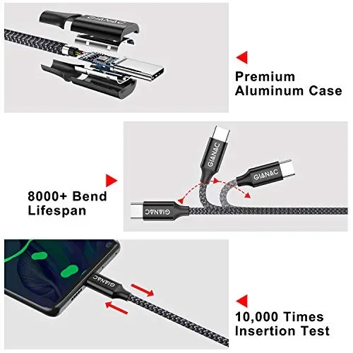 - 【Durata Several】: Parecchie volte superiore rispetto ai cavi del dispositivo originale. Cavi GIANAC realizzati in materiale di nylon di alta qualità, almeno 10000 volte i test di flessione di 90 gradi.