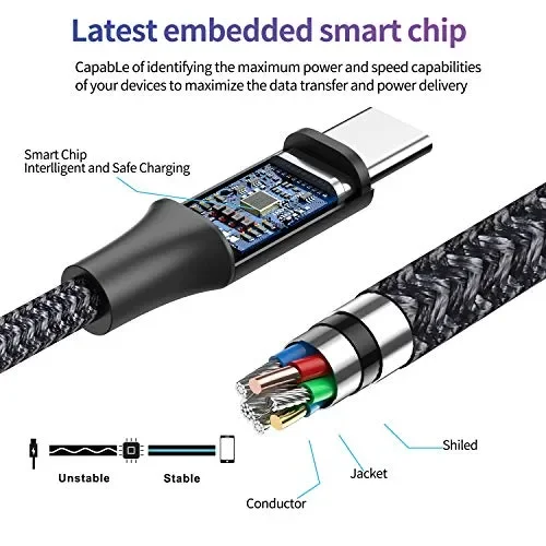 Come team che produce cavi dati di alta qualità, ci impegniamo a creare prodotti migliori per i consumatori. Trasferimento Dati e Carica Rapidi: GIANAC Cavi USB C permette la velocità di trasferimento e la sincronizzazione a 480Mbps. Supporta caricamenti fino a 5V/ 3A. Ultra Durabilit: Cavo USB C Carica Costruito con cavi intrecciati in nylon ad alta densità e connettori in alluminio, fino a 8,000 piega e oltre 10,000 durata della vita di scollegamento e scollegamento.Il design schermato in alluminio garantisce resistenza all’usura quotidiana, duratura anche flessibile. Design del cavo senza grovigli: Giunto sagomato senza cuciture, contatti placcati in oro e resistenza integrata da 56kΩ forniscono conduttività e stabilità straordinariamente affidabili. La custodia Premium in alluminio rende il cavo più resistente. Compatibile con: Samsung Galaxy S10/ S9/ S8/ A40/ A50/ A70/ M20/ Note 10/ 9/ 8; Huawei P30/ P20/ P20 Lite/ P20 Pro/ Mate20 Lite/ P10/ P9; Xiaomi Redmi Note 7/ Mi 8/ Mi 9/ Mi A1/ Mi A2/ ; Sony Xperia XZ/ XZ2/ XA2/ XZ Premium; Honor View 20/ View 10/ 10/ 9/ 8; LG G7/ G6/ G5/ V30/ V20; OnePlus 7/ 6T/ 6/ 5/ 5T; Nexus/ Nokia e Altri Dispositivi USB C. Nota!!!!: ✘✘✘ Non è possibile Supportare Huawei SuperCharge, OnePlus DASH Charge.