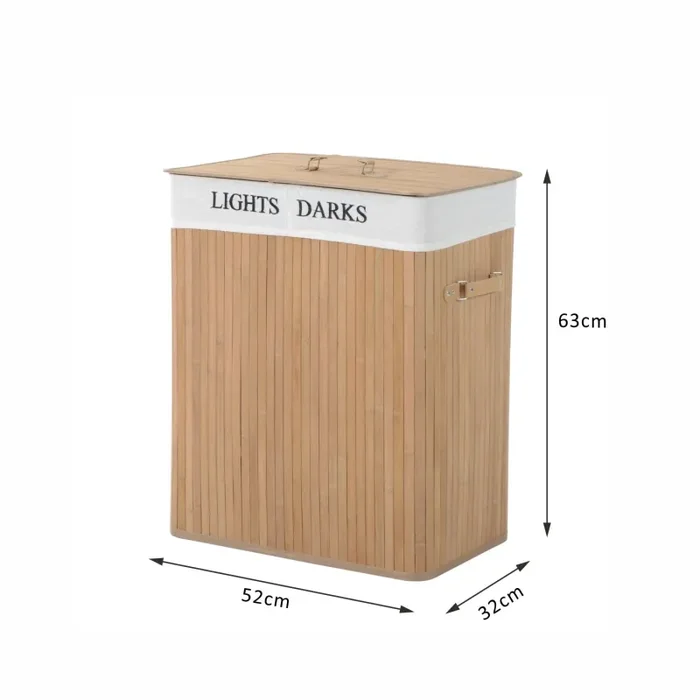 Cesta Portabiancheria 52x32x63 cm in Bambù con Coperchio e Fodera Rimovibile