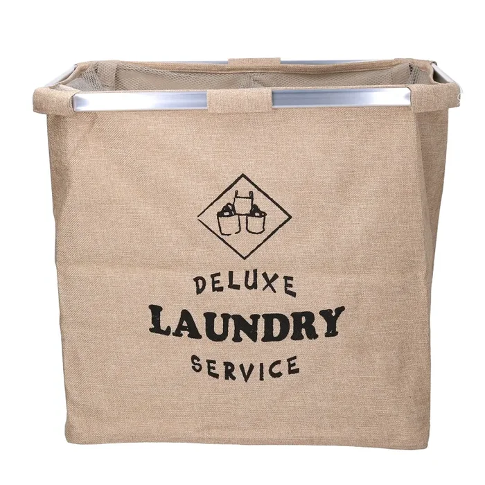 Cesto Portabiancheria in tessuto sacco beige doppio pieghevole cm 54×34,5xh50,5