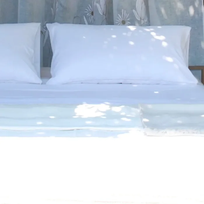 • 2 federe: sopra tessuto cotone, sotto cotone bianco con cordoncini inseriti