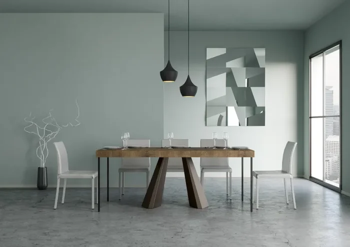 Consolle Allungabile Diamante Premium Small con allunghe a Folding bordo alto cm 8 Una Consolle estremamente stabile, robusta, elegante e dal design originale. Tavolo originale e di grande impatto. Dalle linee pulite e di grande impatto, i due materiali impiegati si fondono in un’armoniosa combinazione. Composta essenzialmente da due parti: la struttura portante in metallo verniciato il piano superiore allungabile con sistema di guide in alluminio ad elevata scorrevolezza. Spazioso e robusto, il piano è supportato da due sistemi di appoggio che andranno inseriti alle estremità mediante appositi meccanismi di bloccaggio. Dotata di elaborate allunghe di tipo Folding. La Consolle Diamante può in un attimo trasformarsi in un piano di 2 metri nelle occasioni più importanti.