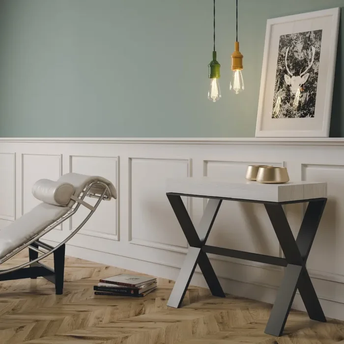 Consolle Allungabile Xenia. Adatta per ambienti classici e moderni, ideale per chi cerca eleganza e praticità: perfetta per ogni ambiente. Xenia è una Consolle allungabile estremamente versatile e di una sicura qualità. Un mobile di pregio a un prezzo imbattibile. Con poche e semplici mosse si trasforma in un comodo e spazioso tavolo da pranzo. La stabilità è garantita dalla struttura con la quale è realizzata e dal meccanismo di allunghe che permette di creare un tavolo della dimensione desiderata, a seconda delle necessità fino a cm 300. L’ampio e solido telaio in metallo, avorato a laser ad alta precisione, forma la struttura portante. La Consolle Xenia è realizzata interamente in Italia mediante l’utilizzo di materiali 100% italiani.