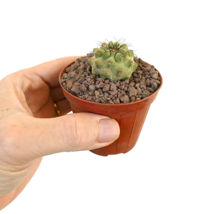 Copiapoa cinerea GREEN x goldii è un cactus ibrido unico noto per la sua tonalità verde-argentea e le sue spine distintive. Originario del deserto di Atacama in Cile, prospera in condizioni soleggiate e aride e forma gruppi compatti nel tempo. Le spine contrastanti e la pelle cerosa lo rendono un’aggiunta affascinante a qualsiasi collezione. Perfetto per gli appassionati di cactus e per chi è interessato a ibridi rari, questa specie a crescita lenta offre sia fascino estetico che interesse botanico. Arricchisci la tua collezione con questo cactus eccezionale.