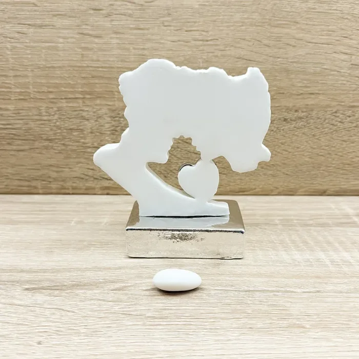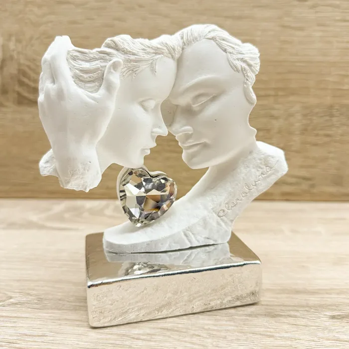 Coppia di Innamorati uniti in un abbraccio, applicazione di un cuore argento, firmato Claraluna.