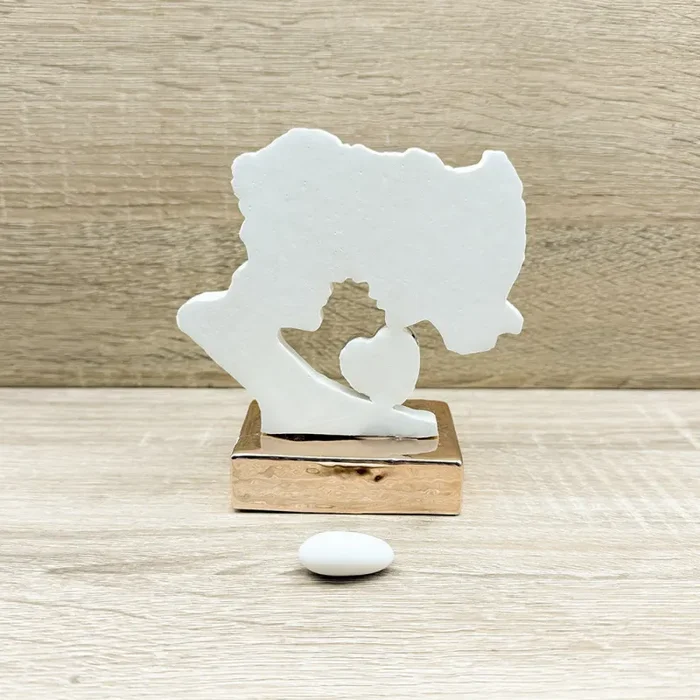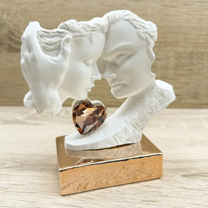 Coppia di Innamorati uniti in un abbraccio, applicazione di un cuore oro rosa, firmato Claraluna.