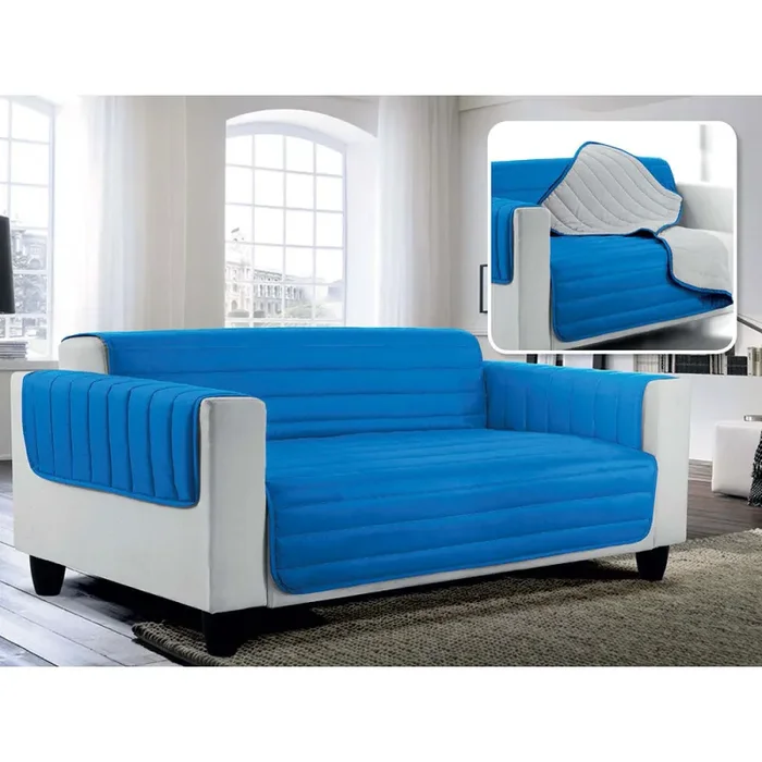 Copridivano Trapuntato in Microfibra Doubleface Royal/Grigio Chiaro