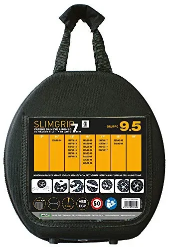 Catene da neve a rombo con maglie ultrasottili da 7 mm. Ideali per le auto moderne con spazio limitato tra ruota, passaruota e dispositivi meccanici/elettronici. Ultra confortevoli: il minimo spessore delle maglie riduce notevolmente sollecitazioni meccaniche, sobbalzi, vibrazioni e rumorosità prolungando la durata degli ammortizzatori e degli pneumatici. Montaggio facile e veloce in meno di 3 minuti senza spostare o sollevare l’auto. Conformi alla normativa ONORM V5117. in pratica borsa salvaspazio/salvabaule. Adatte per le seguenti misure di pneumatico: 14″ (235/60-14), 15″ (195/75-15, 205/70-15, 215/65-15, 225/60-15, 235/50-15, 235/55-15), 16″ (185/80-16, 195/70-16, 195/75-16, 205/60-16, 205/65-16, 215/55-16, 225/50-16, 235/45-16), 17″ (205/55-17, 215/50-17, 225/45-17, 245/40-17), 18″ (205/45-18, 215/40-18).