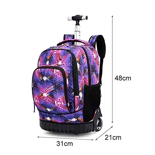- Manico retrattile: Questo zaino con ruote è dotato di un manico telescopico nascosto e di chiusura che si ripone ordinatamente sotto la copertura con cerniera quando non in uso.