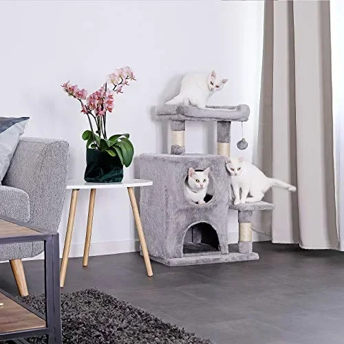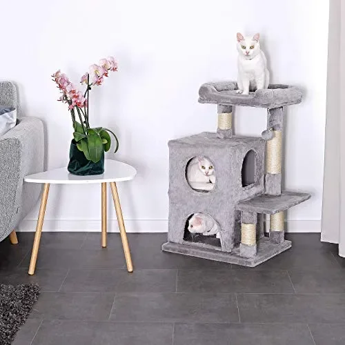 - PARADISO IDEALE PER GIOCARE E RIPOSARE. L’eccellente equipaggiamento di questo tiragraffi ad albero per gatti con 2 grotte e una palla di peluche con una campana soddisfa la necessità di gioco del vostro gatto. Il comodo lettino supporta le necessarie fasi di riposo ed è l’ideale per restare ad osservare a lungo ciò che c’è intorno. Il perfetto equilibrio tra divertimento e relax.