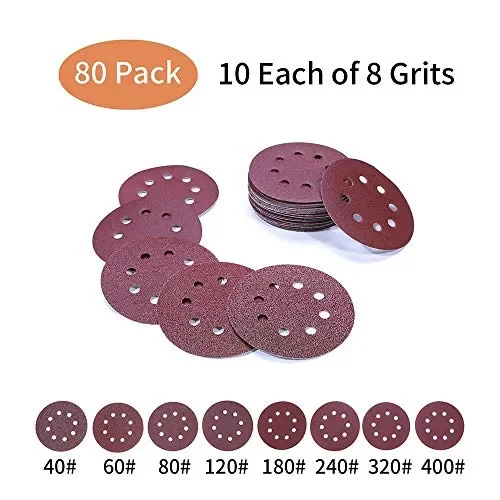 80PCS 125mm 8-Hole Hook and Loop Levigatura Disco Sandpaper Adatto ai modelli Adatto per levigatrice orbitale casuale, come: Black & Decker BDERO100, Bosch ROS20VSC, 3725DEVS, ROS10, DeWalt DWE6421K, DWE6423K, Makita BO5041K, BO5031K, PORTER-CABLE 382, Ryobi RS290G, SKIL 7492-02 Caratteristiche 1. Il retro della carta vetrata con gancio e anello rende la rimozione e la sostituzione facile e veloce, aumentando la produttività e offrendo al contempo finiture superficiali migliori. 2. Il rivestimento semiaperto porta a un modello di graffio uniforme e costante. 3. Il rivestimento speciale allo stearato è progettato per prevenire l’intasamento e il carico. 4. Il sistema di legame in resina ad alta resistenza fornisce un supporto di granella superiore. 5. Pre-punzonato con 8 fori per l’estrazione uniforme della polvere. La confezione include 10 x dischi abrasivi di 40 grana 10 x dischi abrasivi di 60 grana 10 x dischi abrasivi di 80 grana 10 x dischi abrasivi di 120 grana 10 x dischi abrasivi di 180 grana 10 x dischi abrasivi di 240 grana 10 x dischi abrasivi di 320 grana 10 x dischi abrasivi di 400 grana (80 pezzi in totale)