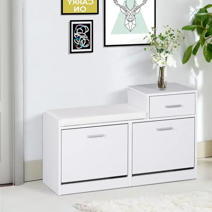 Divanetto Scarpiera 3 Scomparti con Cuscino Bianco 94.5x57x30 cm