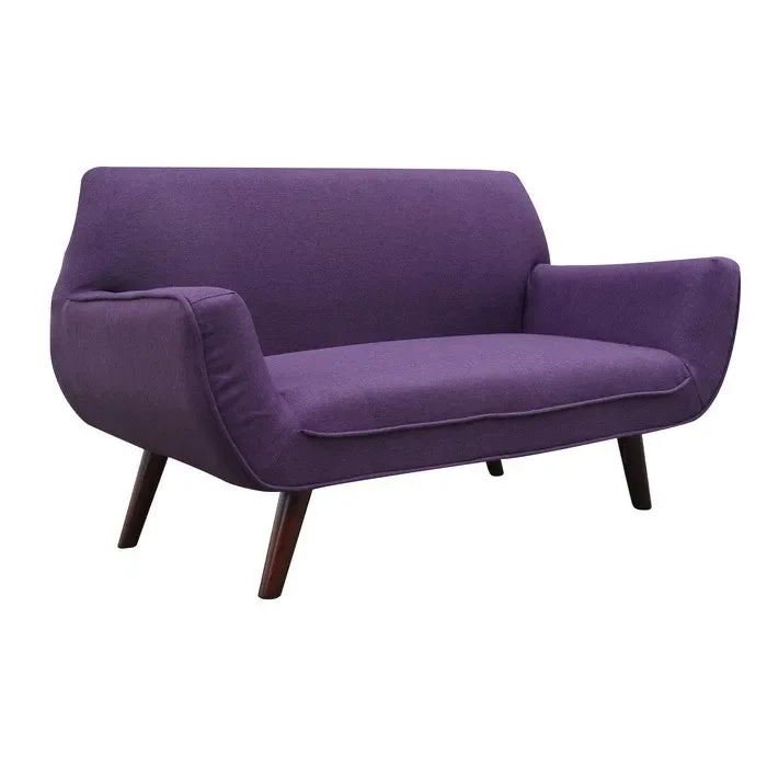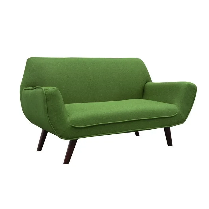 Divano Helia in tessuto con gambe in legno da 20 cm. Grazie alle sue linee eleganti e moderne si adatta ad ogni ambiente. Dimensioni: 142x65x77 cm