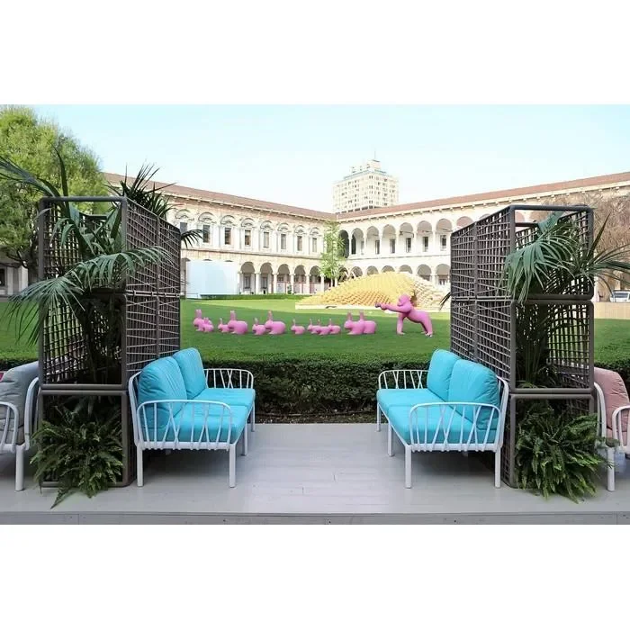 Divisorio modulare per esterno in resina rigenerata ottenuta dal riciclo di arredi in polipropilene giunti a fine vita. I moduli sono componibili in verticale e in orizzontale per valorizzare l’estetica dell’ambiente e favorirne la privacy.. Dimensioni: 70 x 63,5 x h. 70 cm. In PPF.