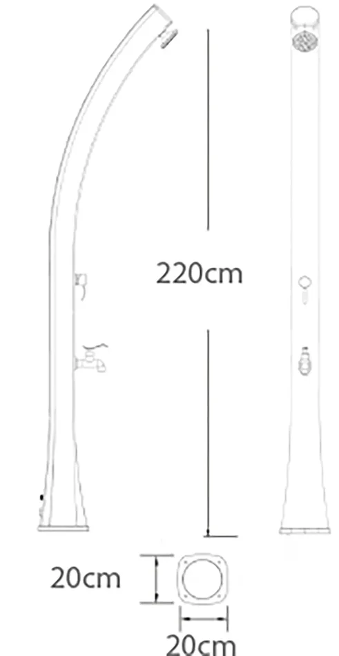 - Dimensioni: Ø20×220 cm (al Soffione) – 226 cm (altezza totale)