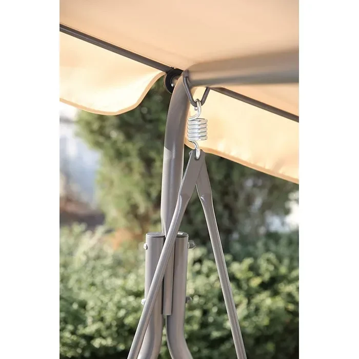 Goditi meravigliose giornate nel giardino o nel terrazzo di casa tua con questo bellissimo dondolo 3 posti. Il Design moderno e la solida struttura tubolare in metallo, fanno si che questo Dondolo a 3 posti modello Mandy sia il numero 1 indiscusso delle proposte per l’ arredo da terrazzo e Giardino. Rivestito interamente in tessuto poliestere trapuntato impermeabile adatto per gli spazi esterni, il tettuccio reclinabile inoltre, fornisce un reale riparo dal sole. Questo dondolo si adatterà perfettamente al giardino o al terrazzo di casa tua, regalando a quest’ultimo un tocco di eleganza e raffinatezza. Il relax ti aspetta con questo incredibile dondolo.