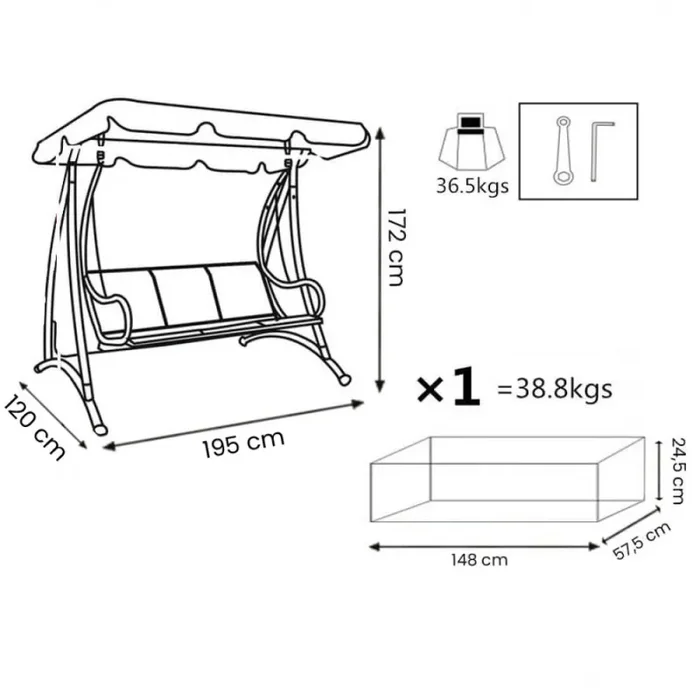 • Dimensioni: 195x120x172 h cm