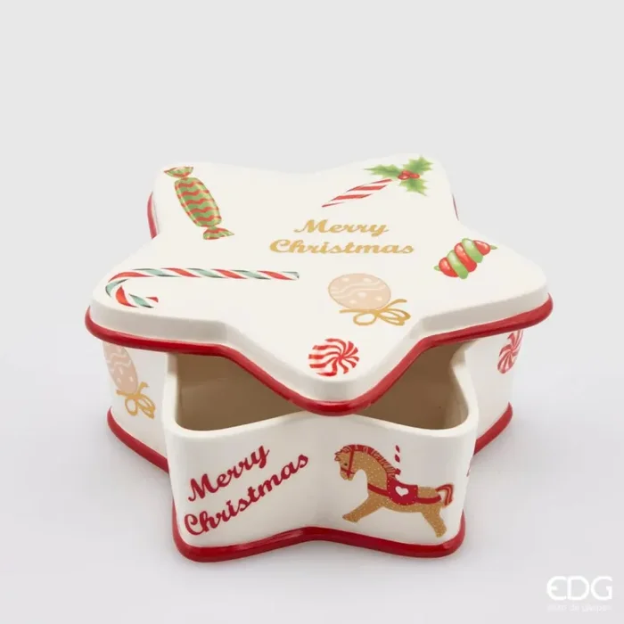 EDG Enzo De Gasperi Contenitore Natale Stella H 10 Cm D 23 Cm Verde Rosso