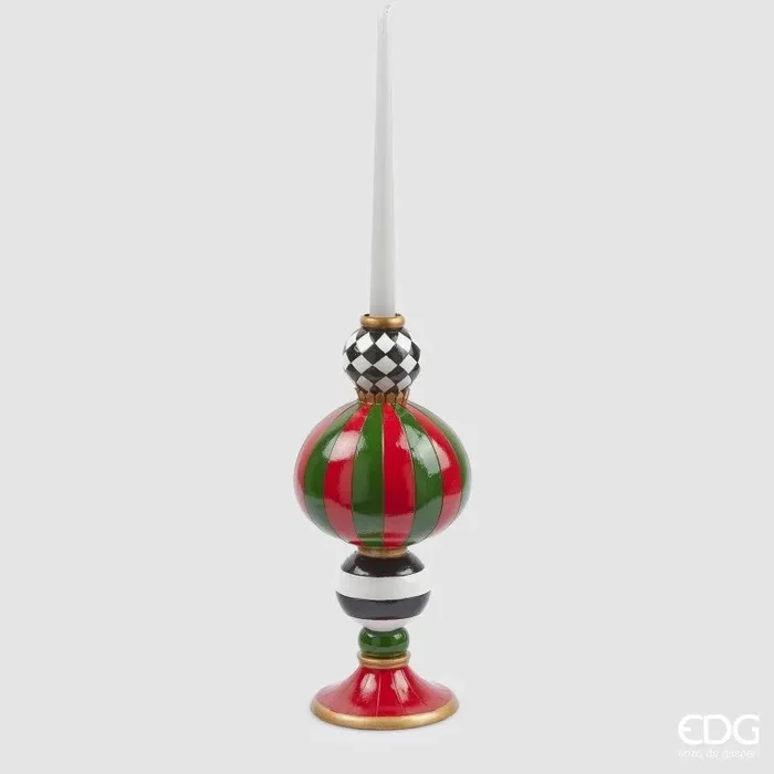 EDG Enzo De Gasperi Portacandela Scacchi Natale H 34 Cm D 15 Cm White Black