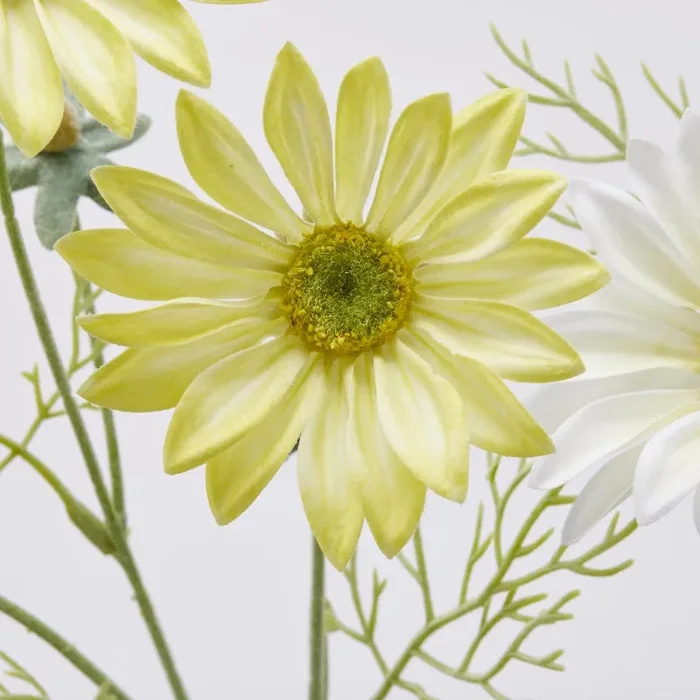 EDG Enzo De Gasperi Ramo Margherita a 3 Fiori con Foglie H 65 Cm Bianco o Giallo 1 Pz