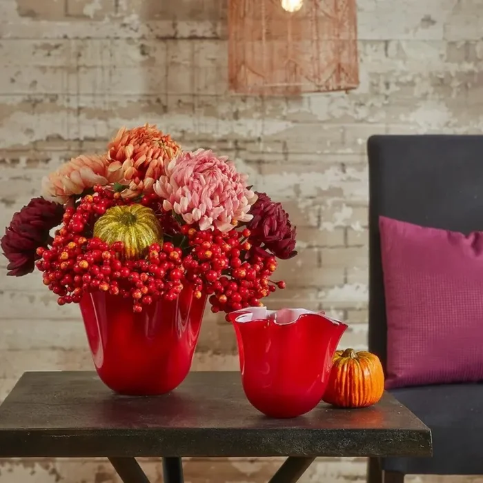EDG Enzo De Gasperi Vaso Drappo Vetro H 18 Cm D 21 Cm Yellow