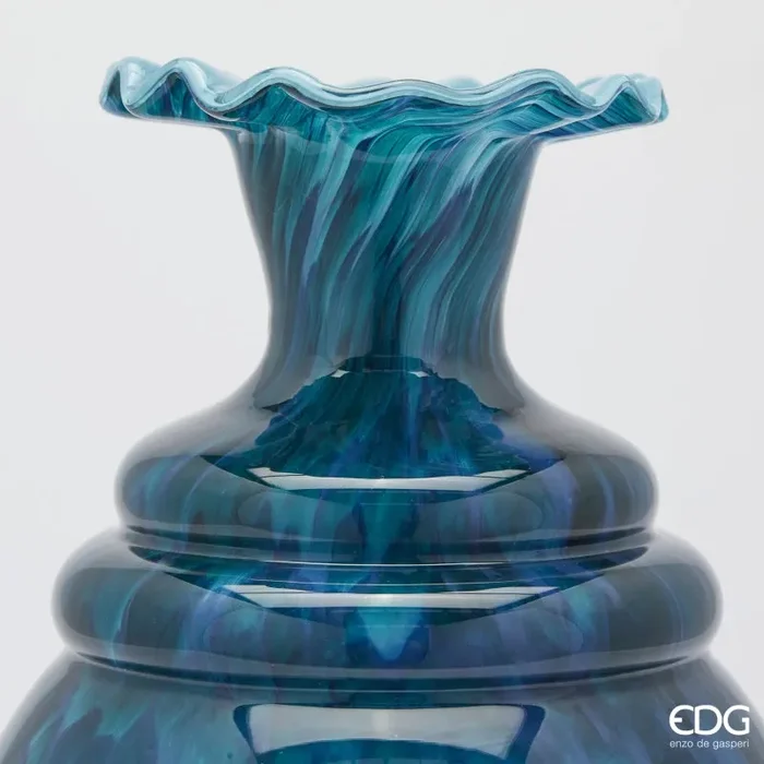 EDG Enzo De Gasperi Vaso Macula Bottiglia H 37,5 Cm D 25,5 Cm Vetro Blue