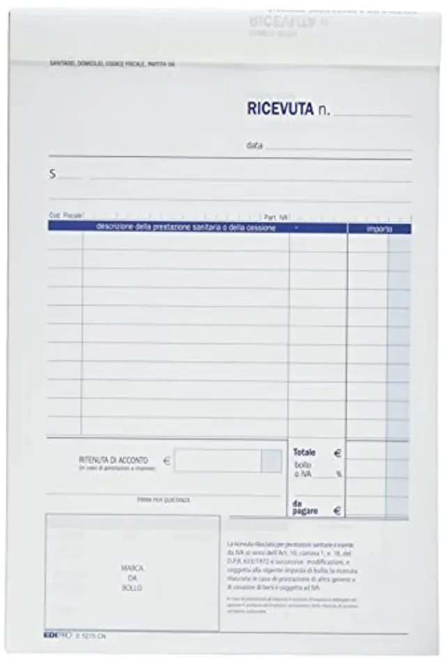EDIPRO – E5275CN – Blocco ricevuta sanitaria 50×2 autoricalcante f.to 9,9×17
