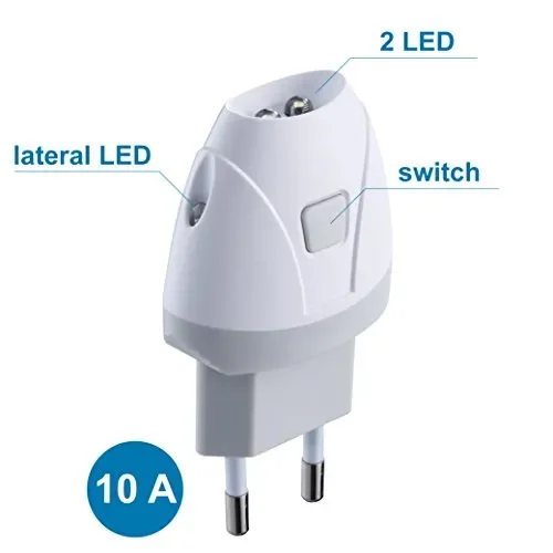 - Quando è collegata alla corrente l torcia funge da luce notturna; i due led laterali sono accesi ed emettono una luce leggera