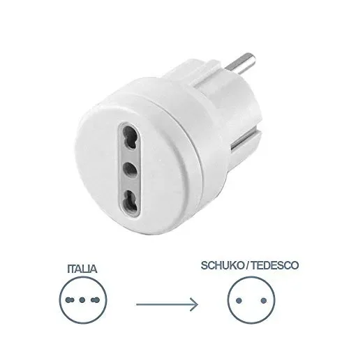 Taglia:Confezione da 3 Confezione da 3 adattatori da viaggio da italia a germania/austria/grecia/turchia/belgio/lussemburgo. Presa italiana bipasso 10/16a. Spina tedesca schuko,.