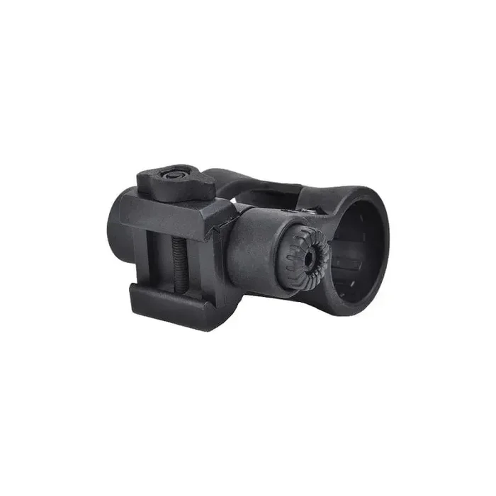 Element Anello Torcia regolabile in 5 Posizioni . Porta torcia un pollice, adattabile a tutte le repliche con slitte Weaver 22 mm. Regolazione a scatto con possibilità di blocco a vite, utile per spostare rapidamente la torcia nella posizione desiderata, realizzato in polimero rinforzato.